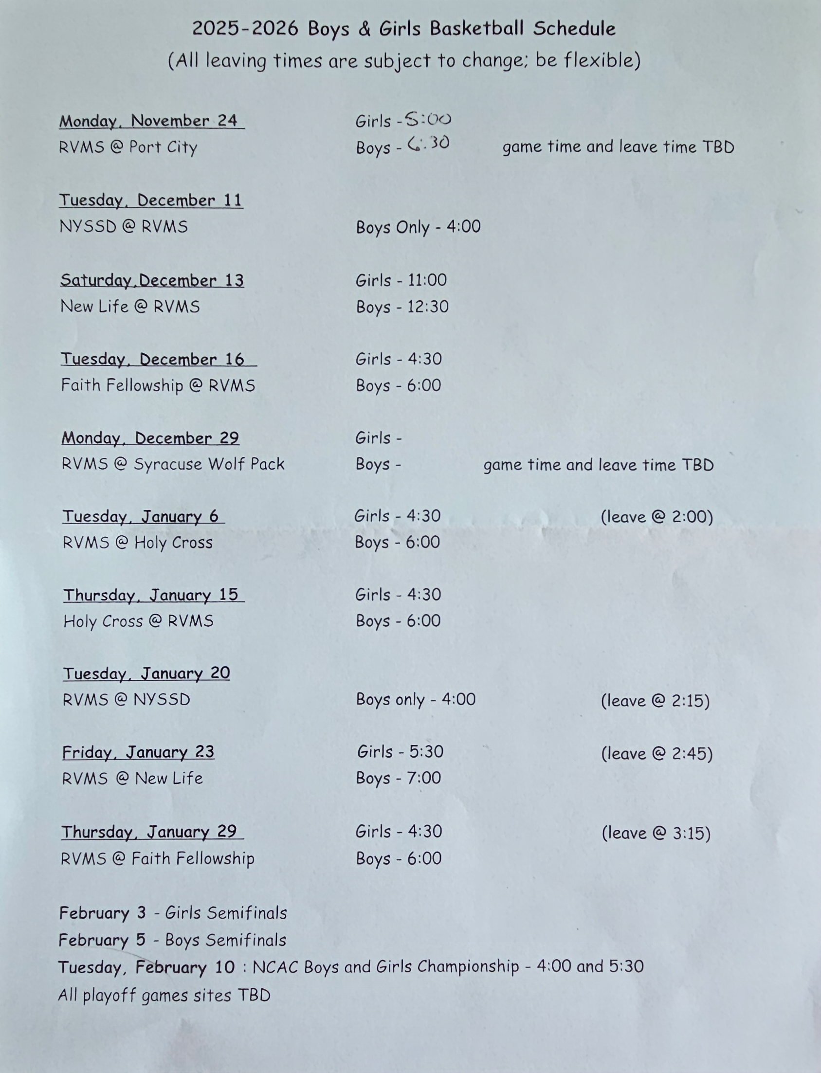Schedules posted during the season.